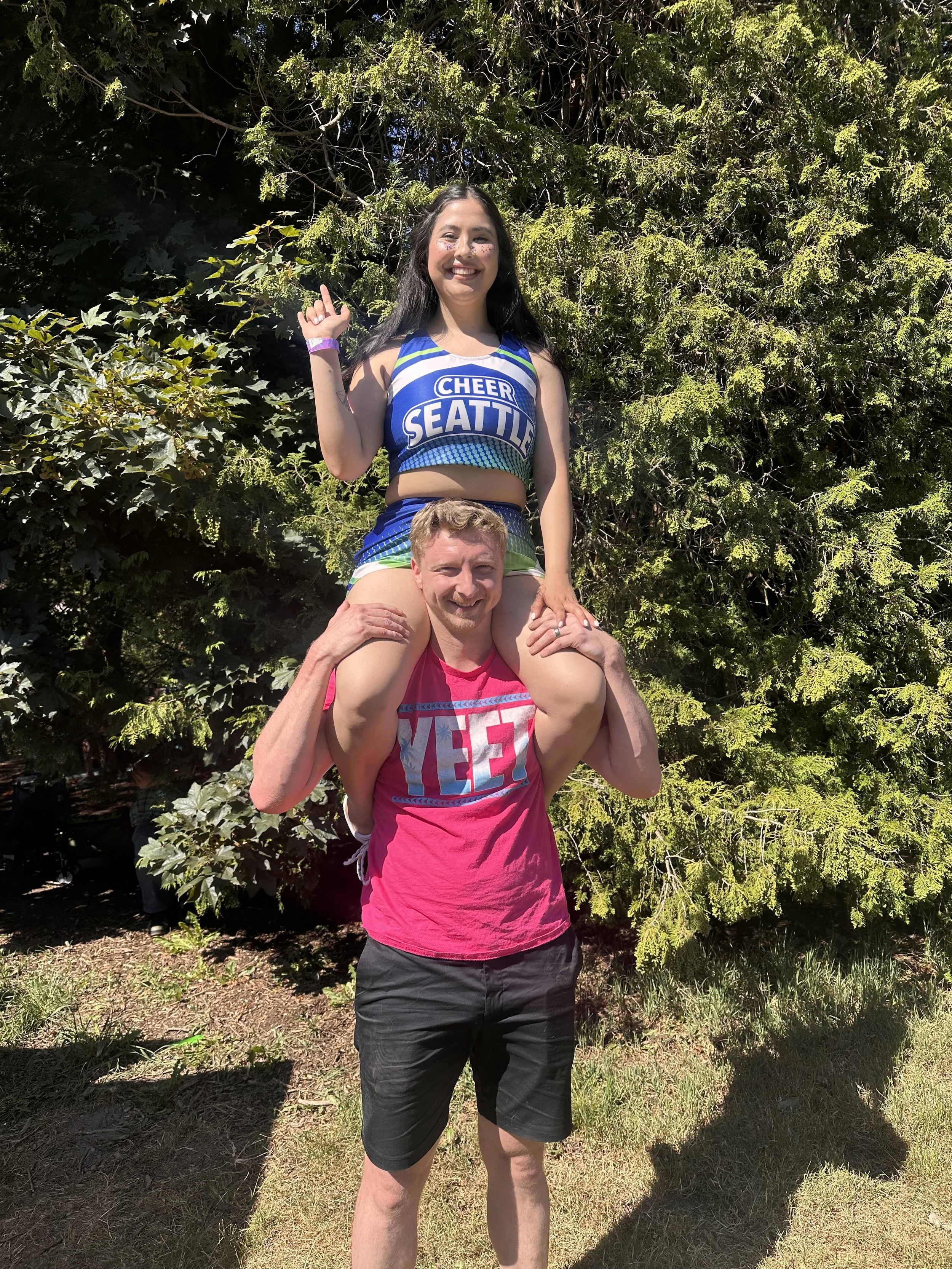 LaCoda is a member of Cheer Seattle, loves to preform, and raise awareness for important causes. LaCoda Miller is also a loving dog mom to two pups: a chiweenie named Blanca and a Black Lab Mix named Draco. When she is not performing with Cheer Seattle, she is spending time with those adorable pups and her husband going on walks around Seattle or selling delicious Frybread and other meals. Follow her food on social media to see whats cooking and place orders!
